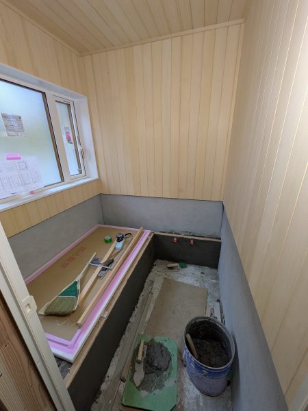 下地(中塗り)を作り、これにタイルを貼り完成となります。