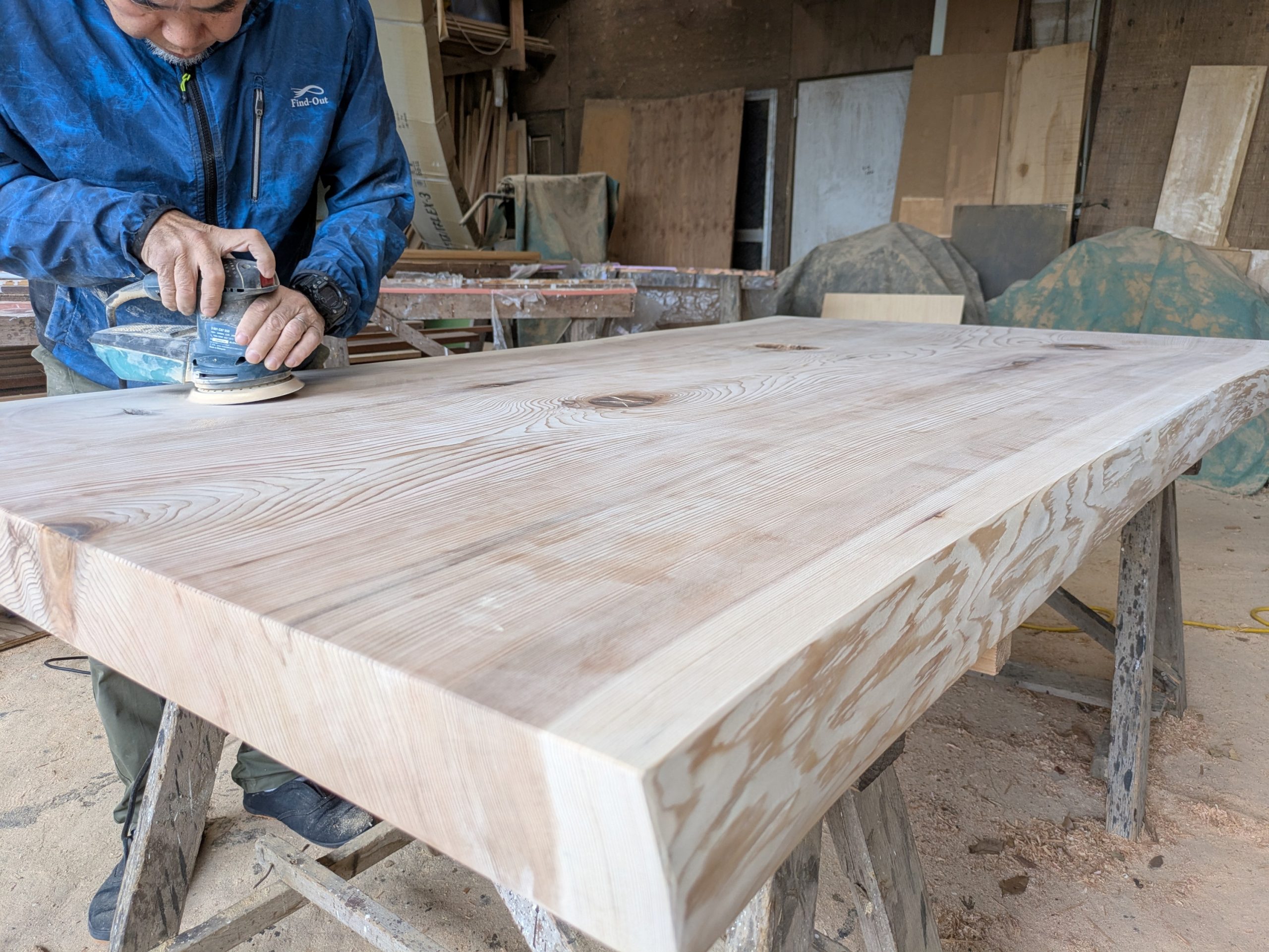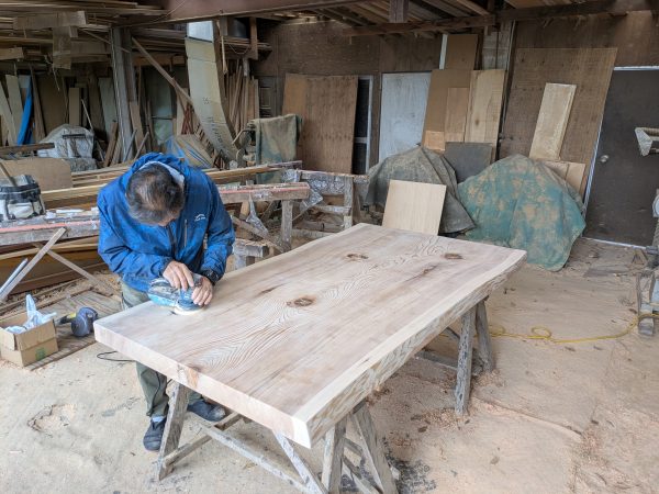 最後に、ダイニングテーブルも削りの工程があと少しで完了です!