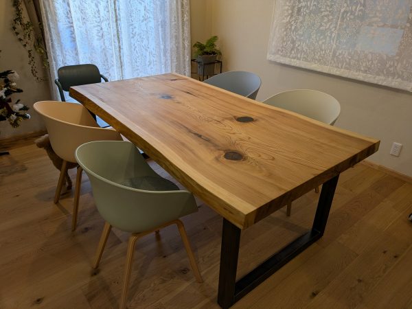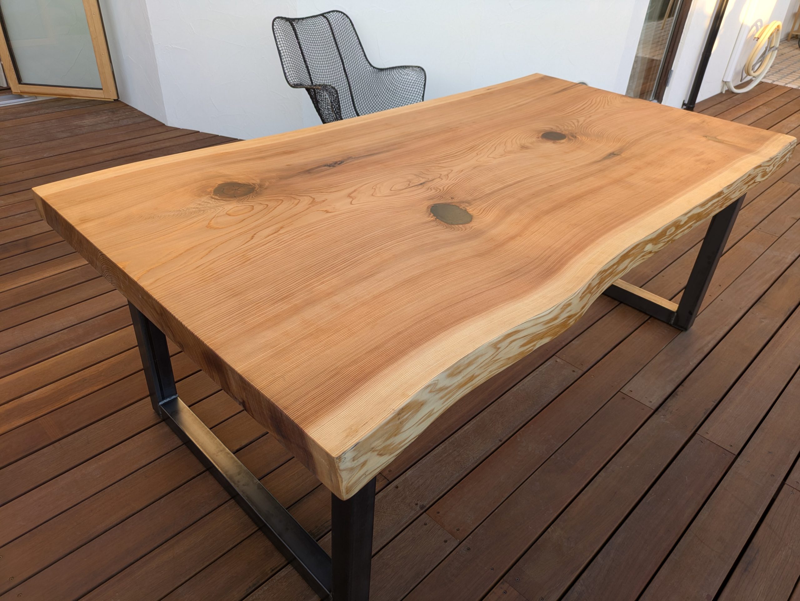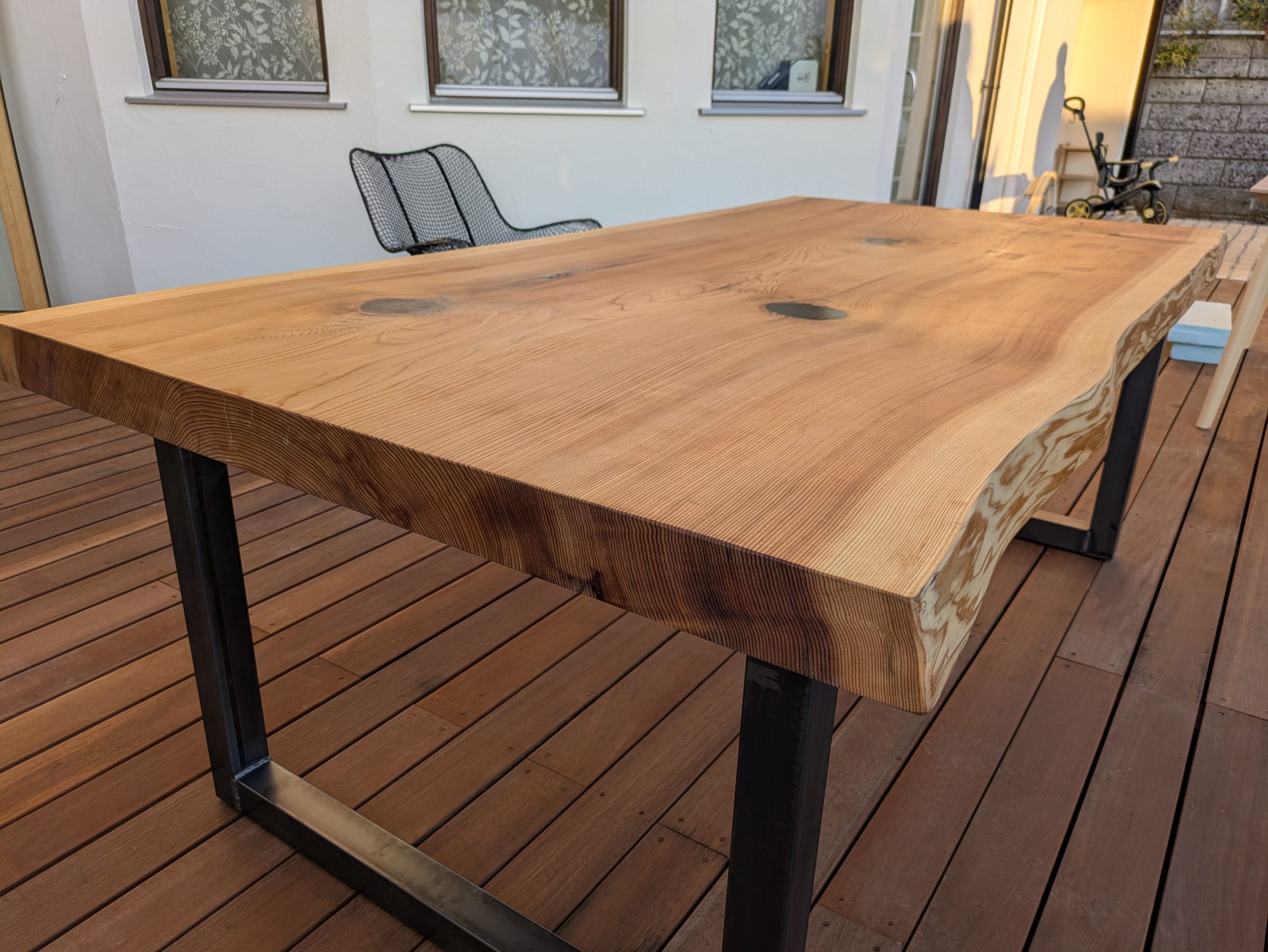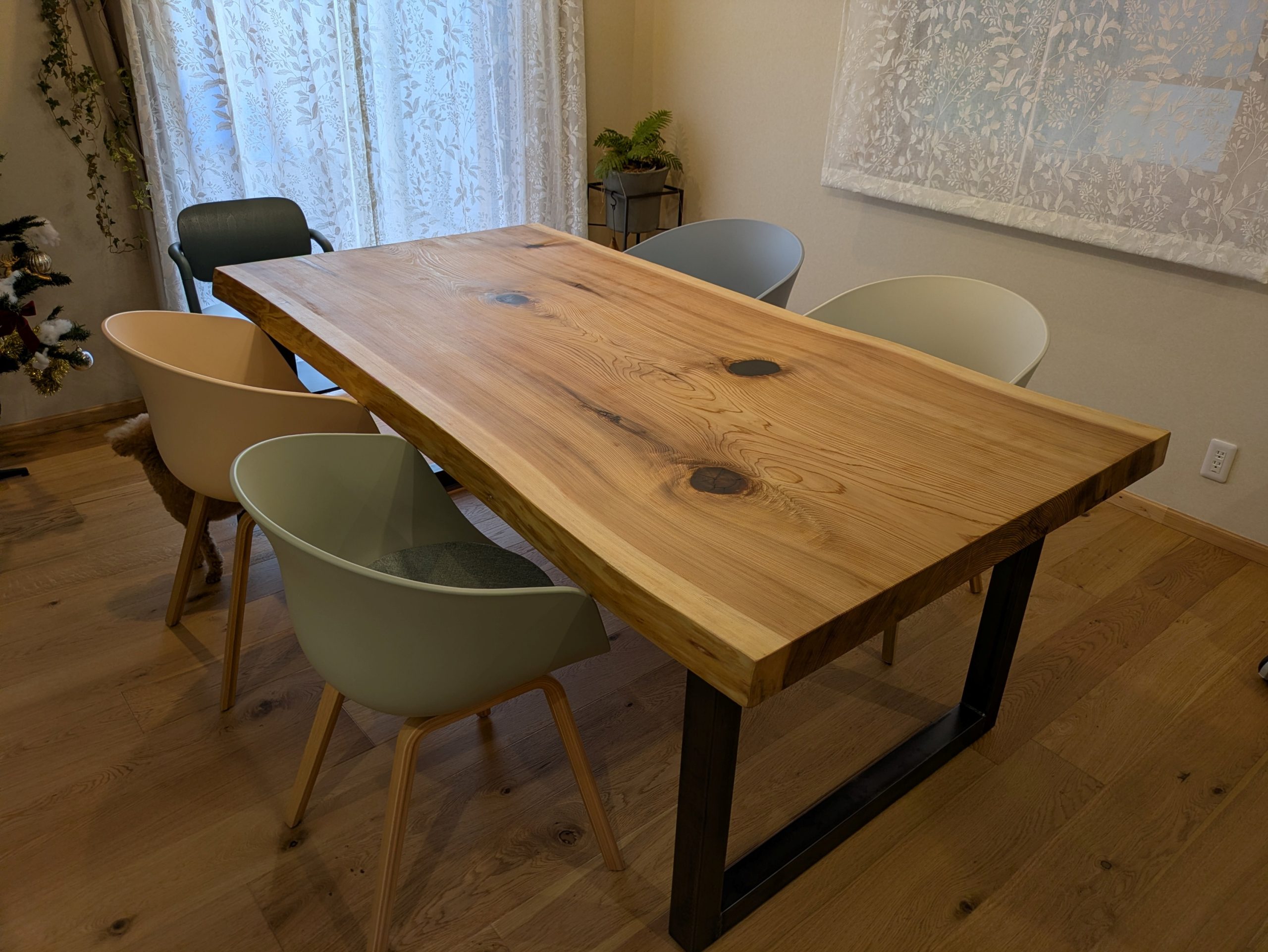 新築工事ではいつもお施主様に1枚板のダイニングテーブルをプレゼントしています。