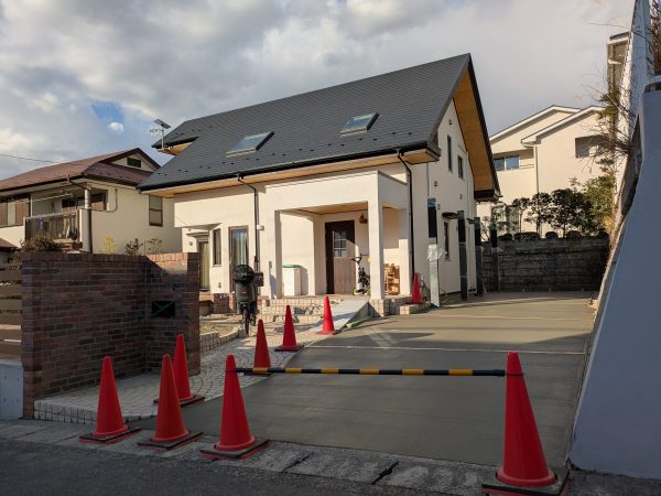 近隣のお家はほぼ駐車場と家には明確な段差(1m前後)があるのですが、やはり使い易さを重視してお家のレベル(高さ)を下げました。